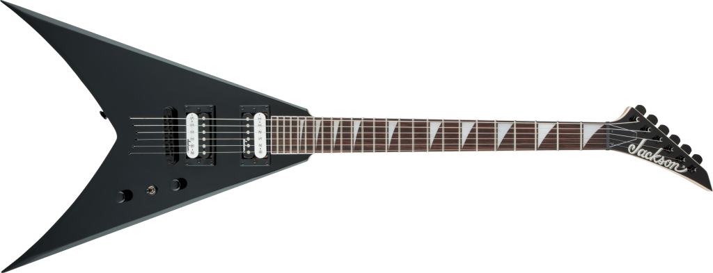 The JS Series King V™ JS32T offers one of our most regal shapes and outstanding performers with an affordable price tag. The JS32T King V has a poplar body, bolt-on maple speed neck with graphite reinforcement and a 12"-16" compound radius bound amaranth fingerboard with 24 jumbo frets and pearloid sharkfin inlays. Other features include dual Jackson high-output humbucking pickups with ceramic magnets and three-way toggle switching, adjustable string-through-body compensated bridge, die-cast tuners and standard strap buttons. Swift and deadly, the King V JS32T features all-black hardware and is available in Ferrari Red or Gloss Black