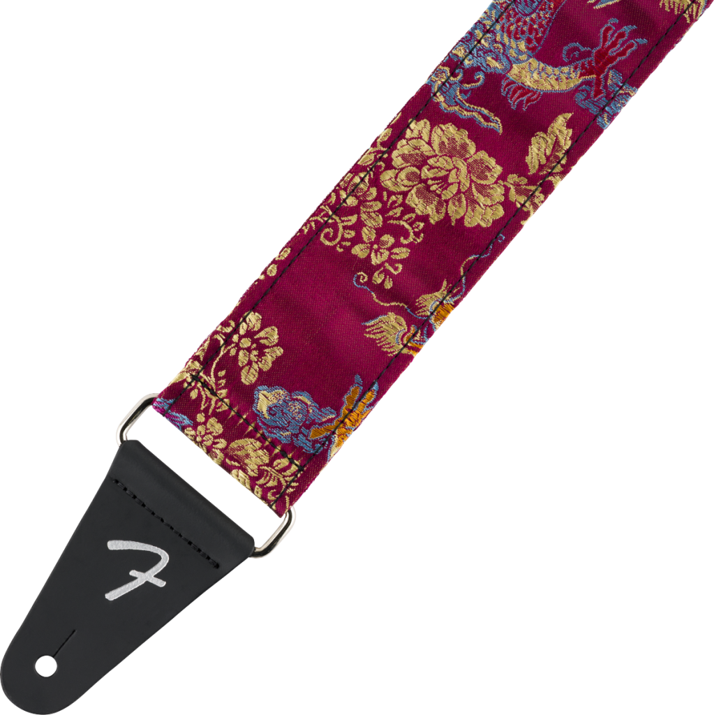 Add a touch of elegance to your performance with the Satin Dragon Straps, featuring a stunning Chinese brocade dragon fabric and a bold metallic satin finish. Crafted from a premium polyester-nylon blend, this USA-made strap is incredibly smooth to the touch, providing a comfortable, luxurious experience every time you play. With real leather ends and metal hardware, the Satin Dragon Strap offers a striking design, and an adjustable length range from 34" to 58".