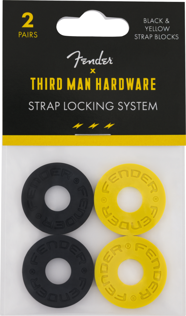 The Fender® x Third Man Hardware™ Strap Blocks deliver the ultimate in strap security with unmistakable style. The most reliable and hassle-free instrument strap lock system ever devised. No need to remove or replace existing strap buttons on your guitar; just slip a Strap Block over the existing strap buttons and that's it - you're ready to go, with your strap locked securely in place.