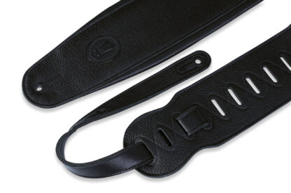 Levy’s 4 1/2″ ‘Black On Black’ Signature Garment Leather Bass Guitar Strap With Leather Wrapped Padding With Iconic Oval In Black