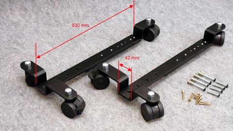 BKB Piano trollies for digital pianos, black, double angled, with 6 polyurethane wheels, width 42, height 25 mm, adjustable 370-550 mm, with brake, suitable for parquet