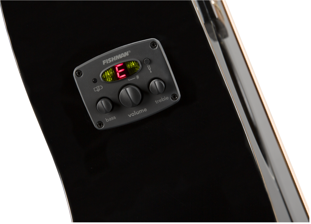 A Fishman Classic Design pickup/preamp system adds peerless amplified performance with a variety of onboard controls to your acoustic instrument without compromising its pure, rich and resonant tone. The built-in tuner is conveniently placed right where you can see it.