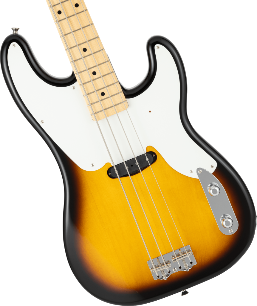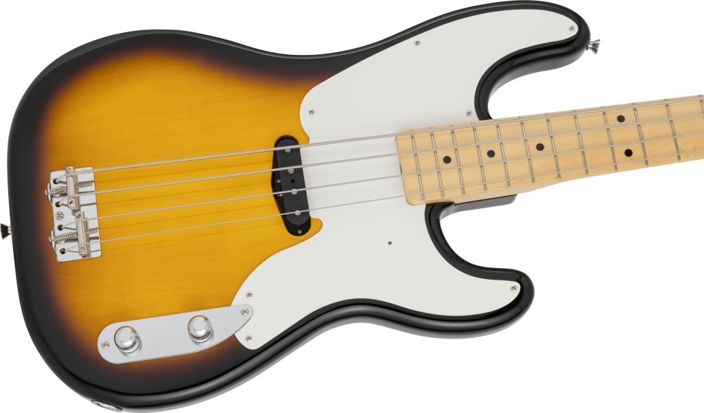 The Made in Japan Traditional Original 50s Precision Bass® features a gloss-finished basswood body. The 9.5-inch radius "U"-shaped maple neck with 20 vintage-style frets provides the classical playability unique to the Traditional series. The two-saddle vintage Precision Bass bridge and the original pickups selected for the Traditional series produce a realistic and musical vintage tone. The narrow nut width makes it easy to play for Japanese players. This series reflects solid guitar craftsmanship and a flexible response to the needs of players.