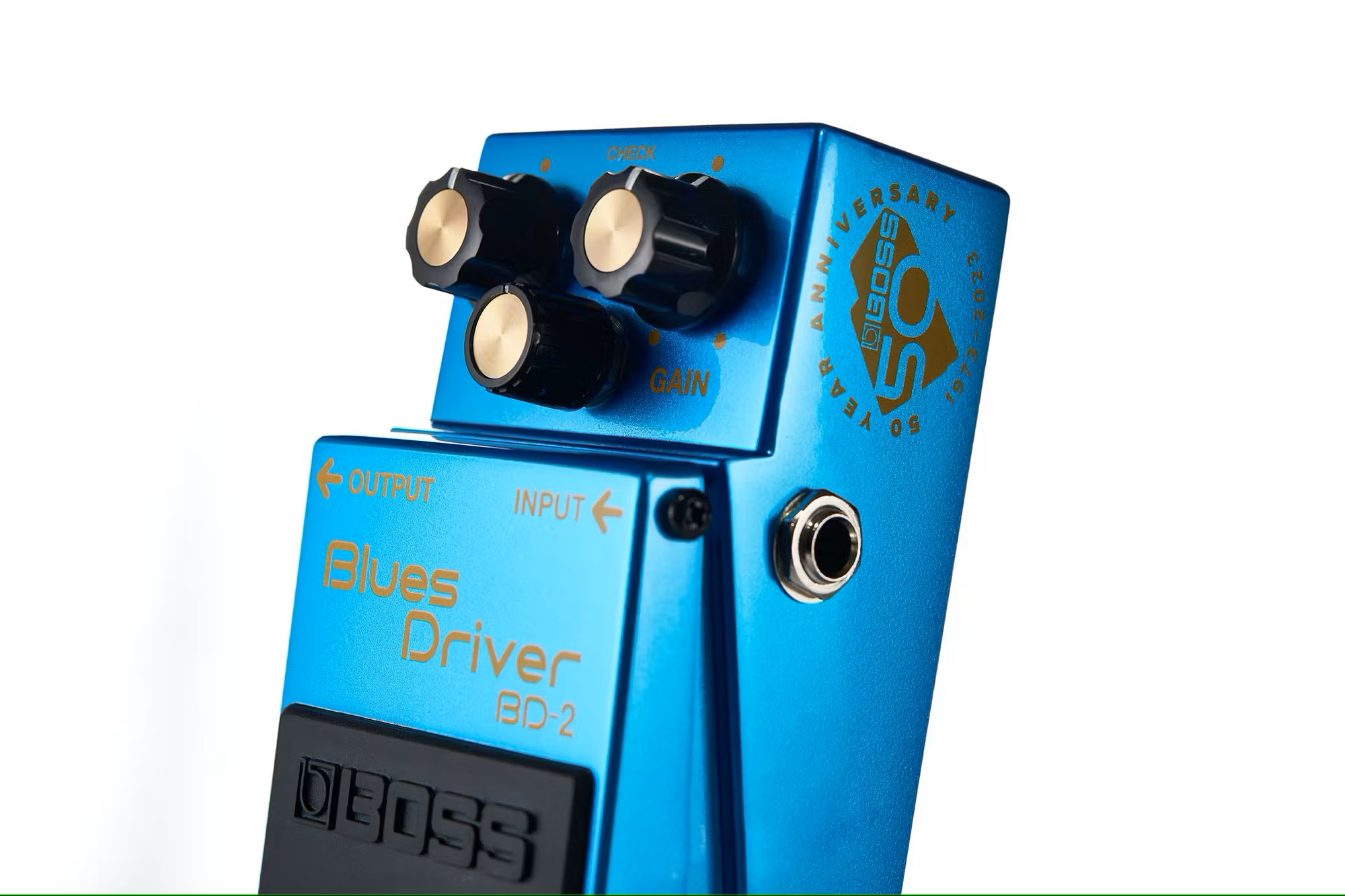 - Celebratory Limited Edition – Housed in a shiny metallic blue finish, the BD-2-B50A Blues Driver, only 7,000 units made to commemorate the Boss’ 50th