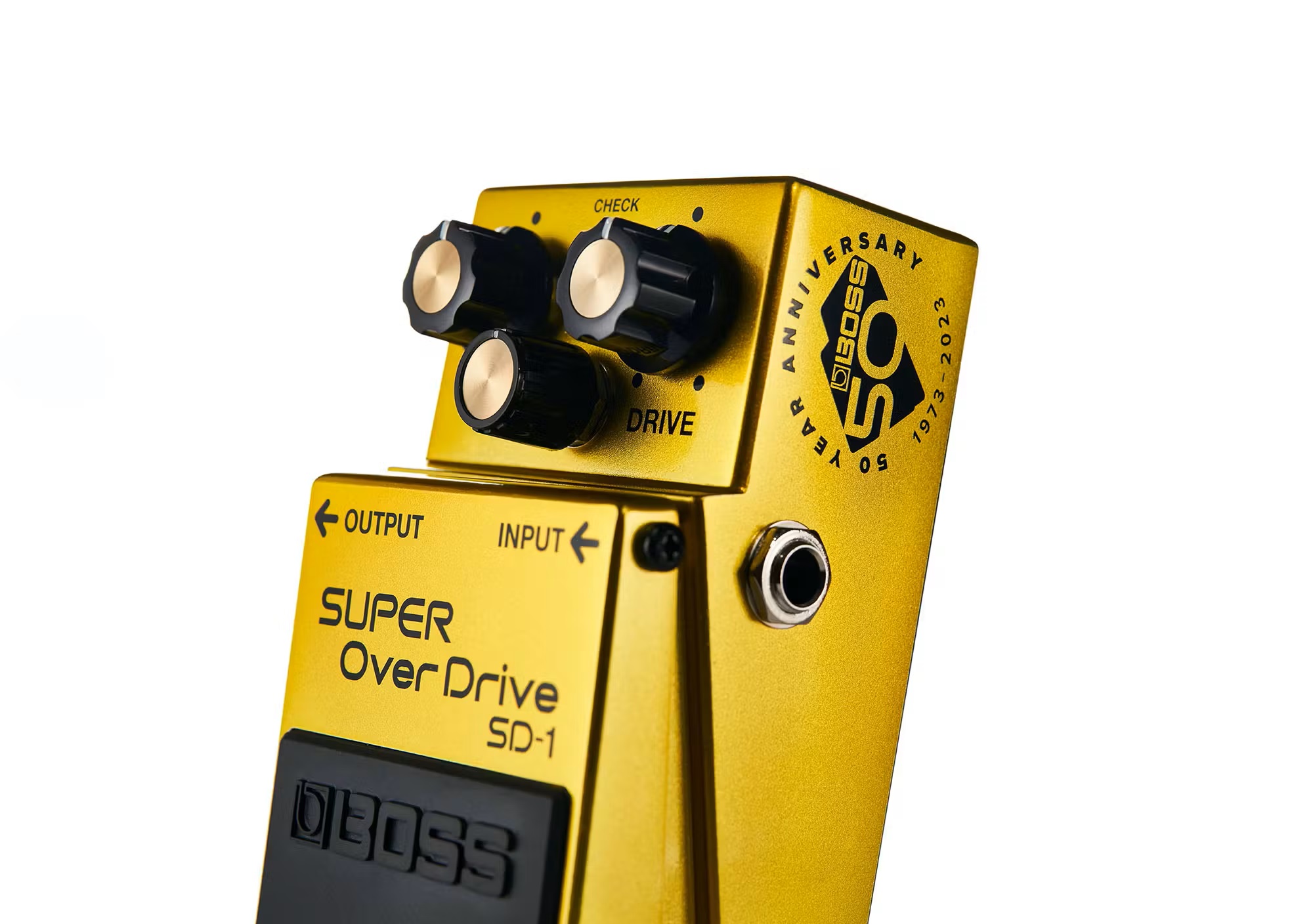 - Celebratory Limited Edition – Housed in a striking metallic yellow finish, the SD-1-B50A Super Overdrive is part of a run of only 7,000 units made to commemorate Boss' 50th anniversary.