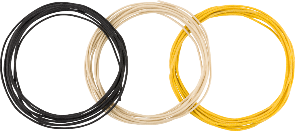 Upgrade your guitar or amplifier with the authentic cloth-covered wire used by Fender® since the early 1950s. Made in the USA by Fender's original wire supplier, the Fender Pure Vintage 22 AWG wire features push-back cloth construction for easy installation and pre-tinned copper strands for reliable soldering. Each package includes an equal amount of black, white, and yellow wire with period-correct waxed cotton outer braid and celanese inner braid - the same specifications found in classic and current Fender instruments and amplifiers.