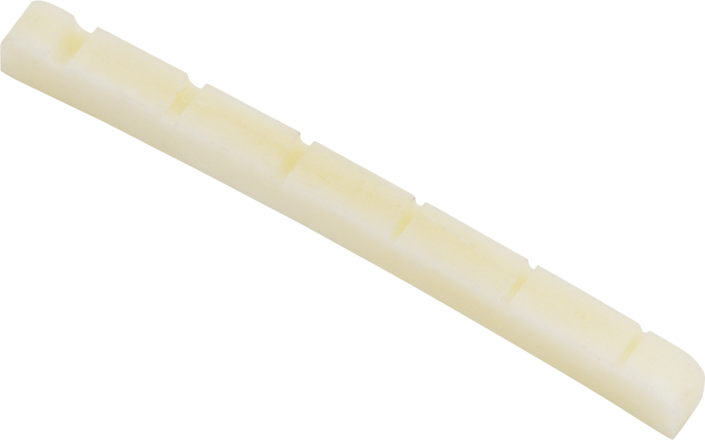 High-quality genuine bone string nut for modern-style electric guitars with a 9.5" fingerboard radius. Pre-slotted with string location grooves to make spacing and positioning a breeze when performing the final string slot filing. Please note: Some filing and shaping modification is required to ensure proper fit and performance.