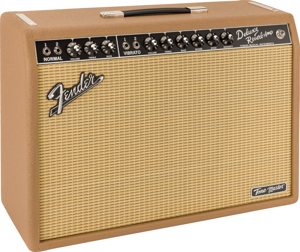 In a bold Fender first, the Tone Master Deluxe Reverb amplifier uses massive digital processing power to achieve a single remarkable sonic feat: faithfully modeling the circuitry and 22-watt power output of an original Deluxe tube amp. Using a high-performance 100-watt digital power amp to achieve the headroom and dynamic range of a real vintage Deluxe tube amp, paired with the pronounced sparkle and clarity of a single Jensen® N-12K neodymium speaker and a resonant pine cabinet, the result is tubeless Deluxe Reverb tone, volume and dynamics virtually indistinguishable from the all-tube original. And with all these features, the Tone Master Deluxe Reverb is in fact about only half the weight of an all-tube Deluxe.