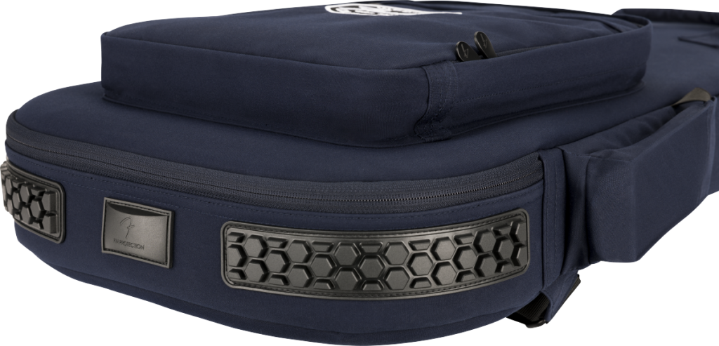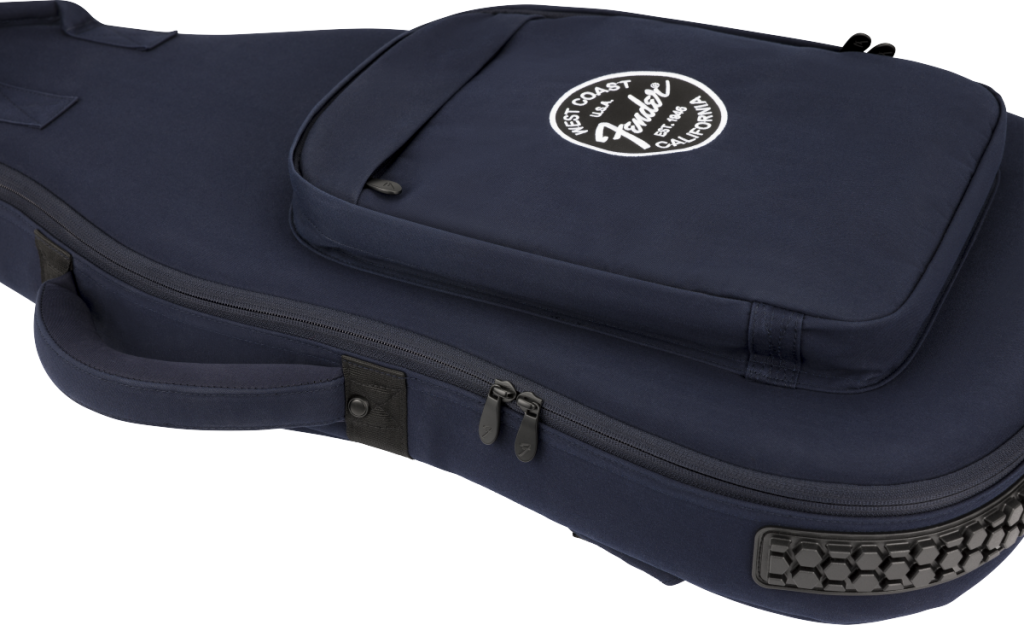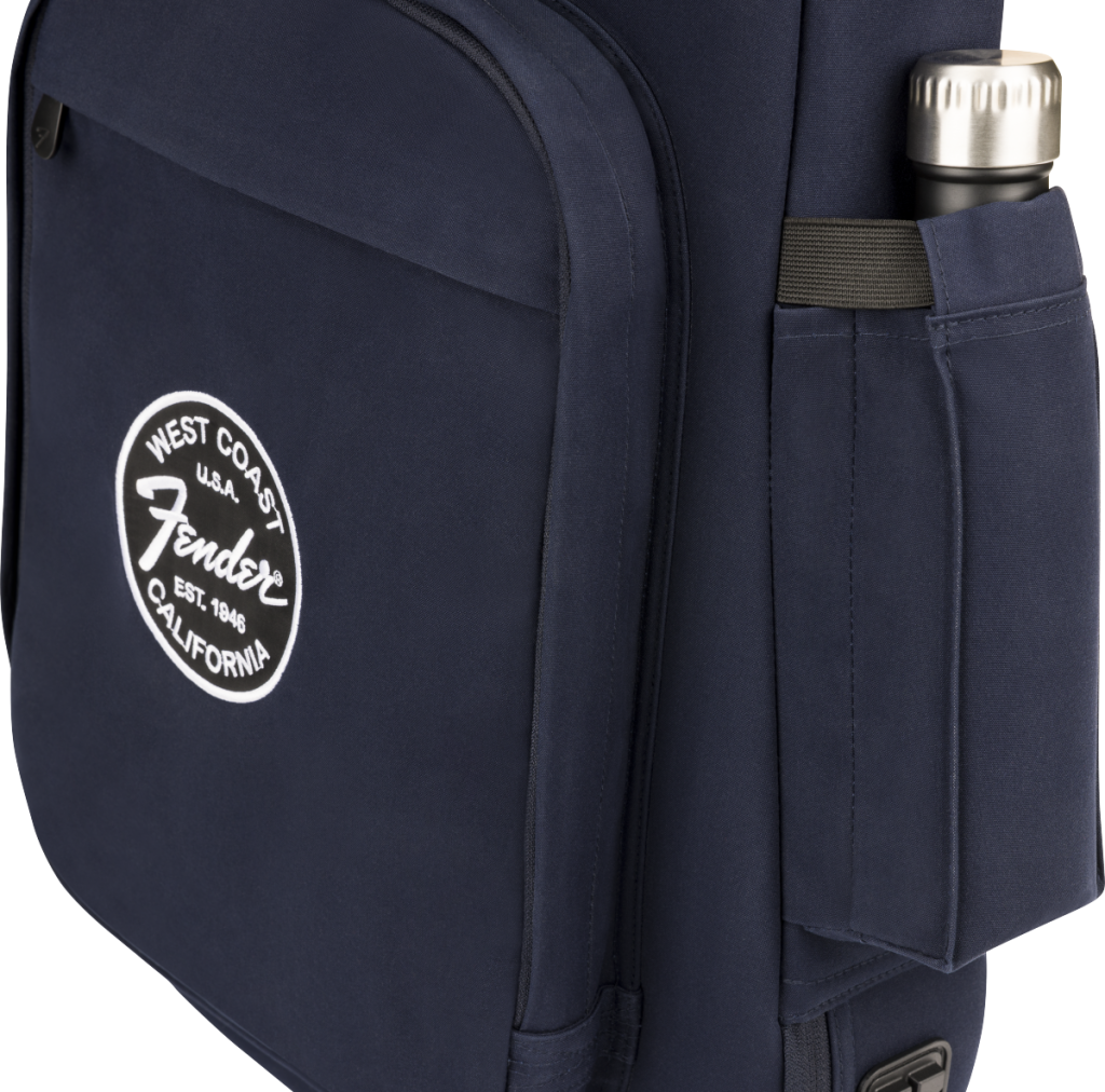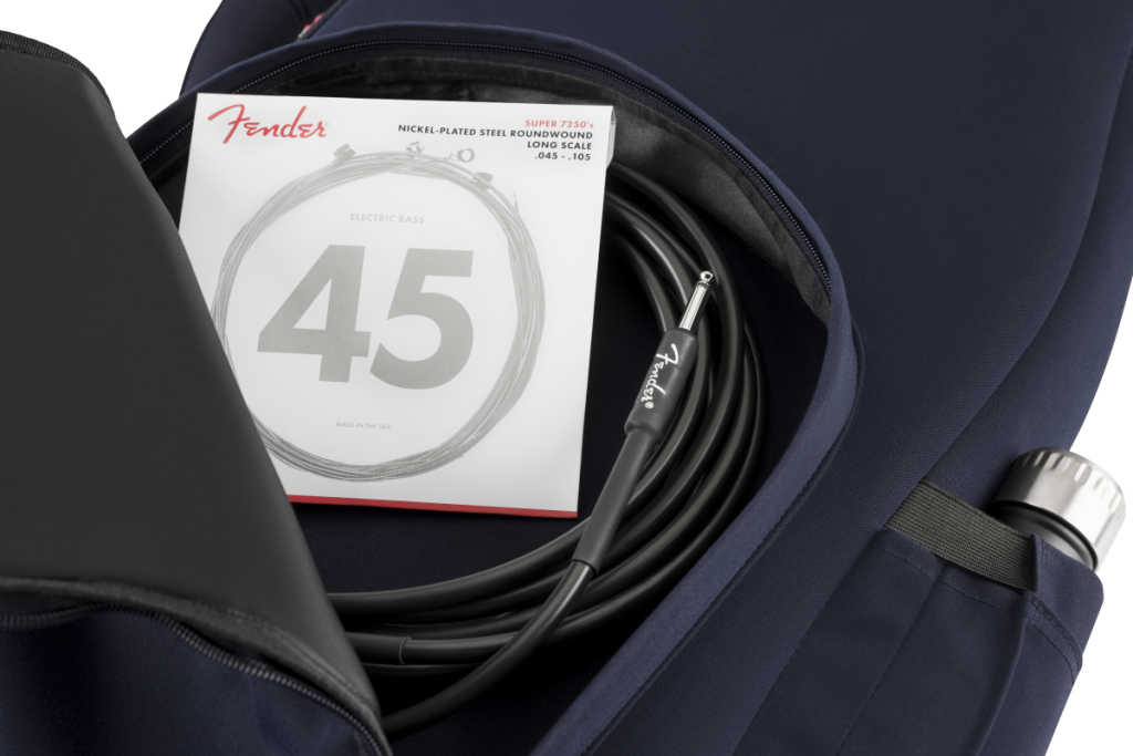- Satin-lined exterior storage pockets and hidden zippered compartment on the headstock