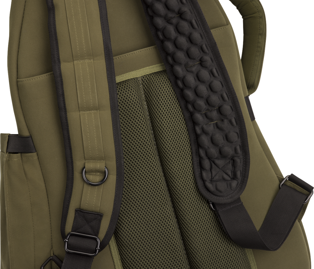 - Fixed, shock-absorbing EVA padded backpack straps with adjustable ladder lock buckles for a secure and comfortable fit
