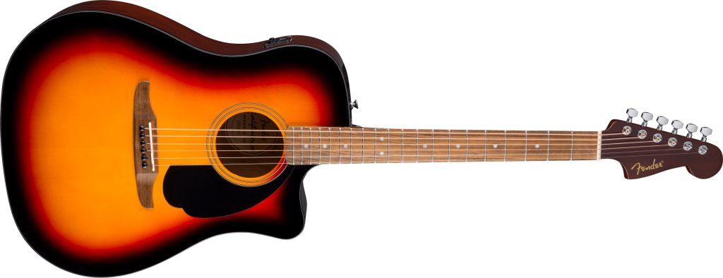 Drawing from a storied legacy of reimagining the acoustic experience for daring and adventurous players, California Series acoustics stand out as authentically different, undeniably timeless, and quintessentially Fender®.The dreadnought shape is beloved for its robust, deep tone and versatile personality, making it the go-to choice for any musical playing style from strumming to soloing. The California Standard Redondo™ CE features resilient laminate construction with a spruce top and sapele back and sides for impressive and satisfying tonal richness, while a 25 ½” scale neck with a slim “C”-shaped profile provides an inviting and effortless playing feel. The onboard Fender electronics provide high-quality output for live amplification, recording and effects, as well as a convenient onboard digital tuner. Other noteworthy details include an oiled walnut fingerboard and bridge, sealed gear tuning machines for smooth and accurate tuning action, and a sleek long-lasting gloss finish.