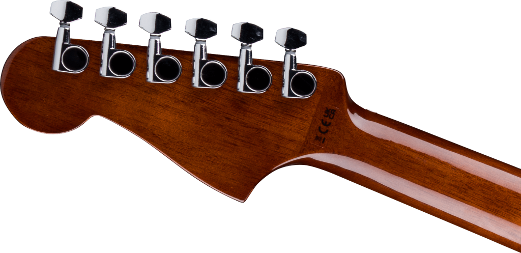 An instantly recognizable Fender design feature, the 6-in-line headstock creates a straight string pull from the nut for optimal tuning machine performance, places all tuners in a linear location for easy access, and the tilt-back design produces a consistent break angle on all strings for even response and string feel.