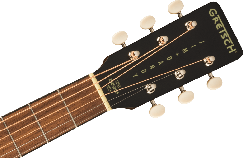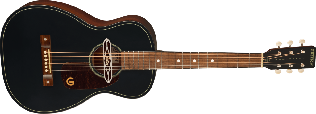 The X-braced body is crafted with select lightweight laminate tonewoods for an optimal balance of woody vintage tone and reliable durability, while the “C”-shape neck presents an inviting feel for hours of old-timey inspiration. The onboard Gretsch Deltoluxe magnetic soundhole pickup produces versatile electrified acoustic tone, providing added utility for live performance, recording, and effects pedals. Period-correct details such as a vintage-style pinned bridge, “G”-graphic pickguard, painted pinstripe purfling, 3-on-a-plate open-gear tuning machines and oversized dot fingerboard inlays combine for a nostalgic personality destined for any barnburner or jamboree.