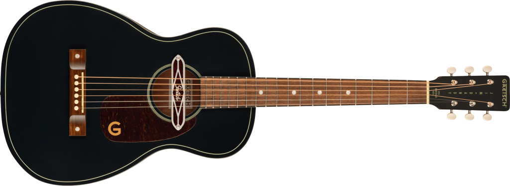 Inspired by the historic “Rex” line of instruments offered by mail-order catalog in the 1930s, ‘40s and ’50s, Jim Dandy™ models embody the charm and spirit of those early Gretsch® flat-top guitars with the superior playability and best-in-class tone that their namesake suggests.Featuring a petite and portable parlor body shape and a short 24“ scale length, the Jim Dandy™ Deltoluxe™ Parlor punches above its weight with a distinct tonal clarity and throaty midrange for which parlor guitars are so beloved.The X-braced body is crafted with select lightweight laminate tonewoods for an optimal balance of woody vintage tone and reliable durability, while the “C”-shape neck presents an inviting feel for hours of old-timey inspiration. The onboard Gretsch Deltoluxe magnetic soundhole pickup produces versatile electrified acoustic tone, providing added utility for live performance, recording, and effects pedals. Period-correct details such as a vintage-style pinned bridge, “G”-graphic pickguard, painted pinstripe purfling, 3-on-a-plate open-gear tuning machines and oversized dot fingerboard inlays combine for a nostalgic personality destined for any barnburner or jamboree.Well suited for everything from bluesy porch pickin’ to speakeasy swingin’, the Gretsch Jim Dandy Deltoluxe Parlor is a ramblin’ companion for newbies and old-timers alike.