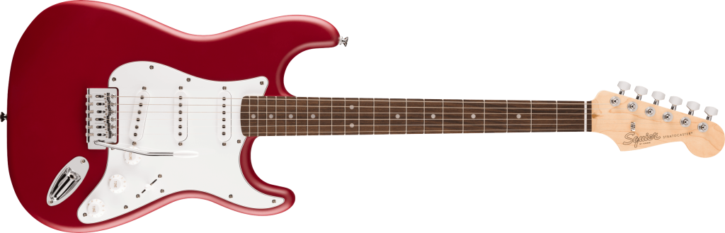 Designed by Fender® in California and an icon of rock & roll, the Debut Collection™ Stratocaster® features a slim “C”-shaped neck profile and a thin, lightweight body for a comfortable playing feel while three single-coil pickups with 5-way switching offer a wide variety of classic Strat® tones. Further details of this model include a tremolo bridge with removable arm for exciting string-bending effects, sealed-gear tuning machines for smooth, accurate tuning action and durable chrome hardware for a premium look.