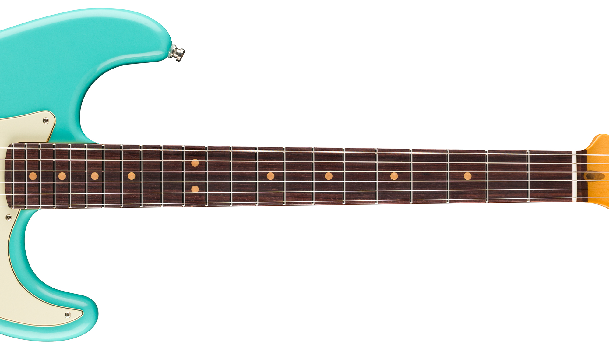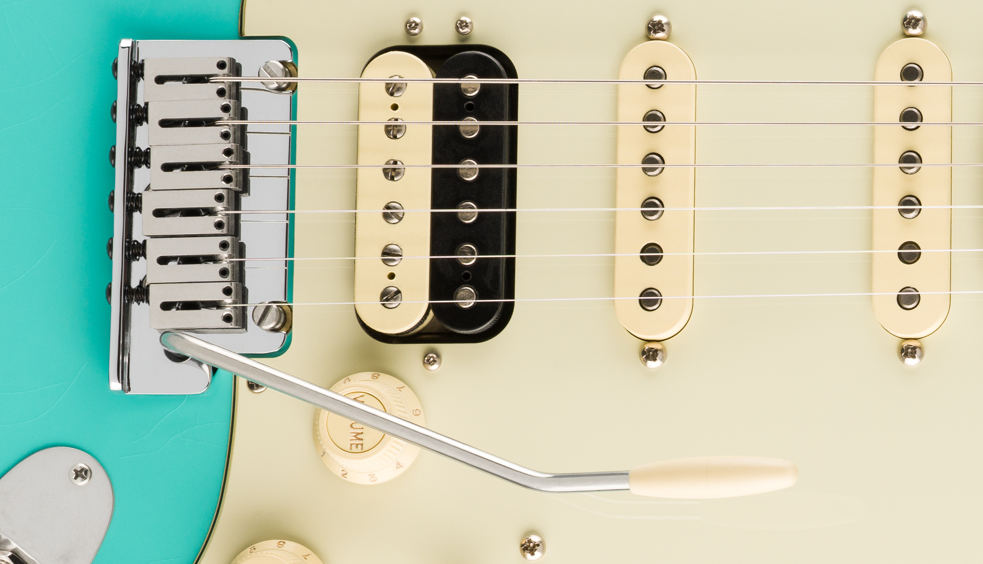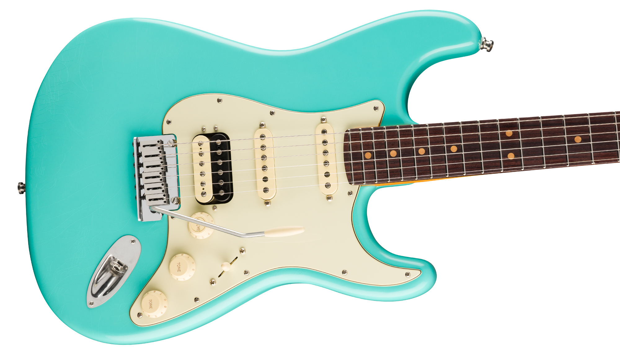 Under the hood, Pure Vintage '61 Strat® single-coils deliver classic Fender tones, from sparkling cleans to rich, expressive leads while the Haymaker™ humbucker brings powerful, articulate crunch. Performance hardware includes a precision-engineered 2-Point American Ultra synchronized tremolo with polished stainless steel block saddles, cold rolled steel block, and deluxe locking tuners for quick string changes and superior tuning stability.