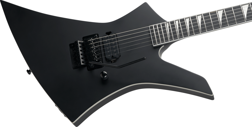 The KE1A wields a single-ply bound poplar body with a three-piece maple neck-thru construction engineered for lightning fast playing. The compound radius ebony fretboard with 24 jumbo stainless steel frets beckons blistering solos across its expanse. Sharkfin inlays guide your shredding while providing the iconic Jackson style metalheads crave.