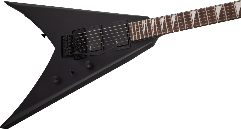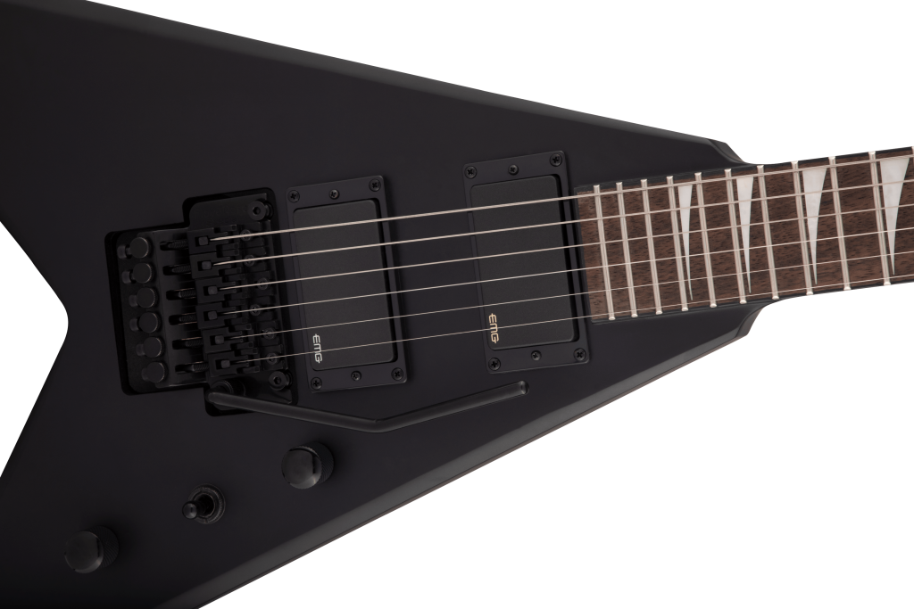 The Jackson X Series King V™ KVXMG has a basswood body, through-body maple neck and bound 12"-16" compound-radius rosewood fingerboard that curves more dramatically at the nut for easy chording and flattens out as it approaches the neck joint for low-action bends without fretting out.