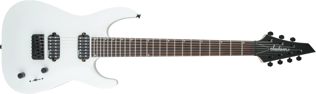 Powered by direct mount dual Jackson high-output humbucking pickups, the JS32-7 DKA HT is also equipped with a three-way blade switch, single volume and tone controls, compensated string-through-body fixed Jackson HT7 bridge, sealed die-cast tuners and our 3x4 (3 over, 4 under) AT-1 headstock.