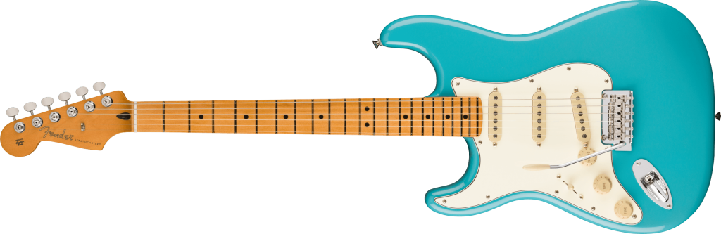 Under the hood, Pure Vintage '61 Strat® single-coils deliver classic Fender tones, from sparkling cleans to rich, expressive leads while the Haymaker™ humbucker brings powerful, articulate crunch. Performance hardware includes a precision-engineered 2-Point American Ultra synchronized tremolo with polished stainless steel block saddles, cold rolled steel block, and deluxe locking tuners for quick string changes and superior tuning stability.