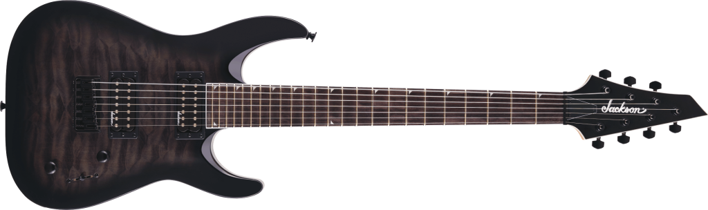 A formidable 7-string beast, the JS Series Dinky Arch Top JS22Q-7 DKA HT is wrapped in a brooding Transparent Black Burst finish with all-black hardware and our Jackson 3x4 AT-1 black headstock.