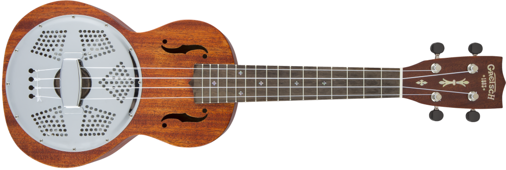 Unparalleled volume from a concert-size uke!With its powerful 6" "biscuit" resonator cone, Gretsch's remarkable G9112 Resonator-Ukulele makes your playing pleasingly prominent in any acoustic mix.Its premium features include a 15" scale length, an ovangkol biscuit bridge puck with maple saddle, mahogany top, back and sides, one-piece mahogany neck with bone nut, ovangkol fingerboard with 16 frets (12 to body), Grover® 9NB Sta-Tite™ geared tuners, Aquila® Nylgut® strings and deluxe fitted gig bag.The instrument strikes an organic vibe with an "open pore" semi-gloss Honey Mahogany Stain finish.