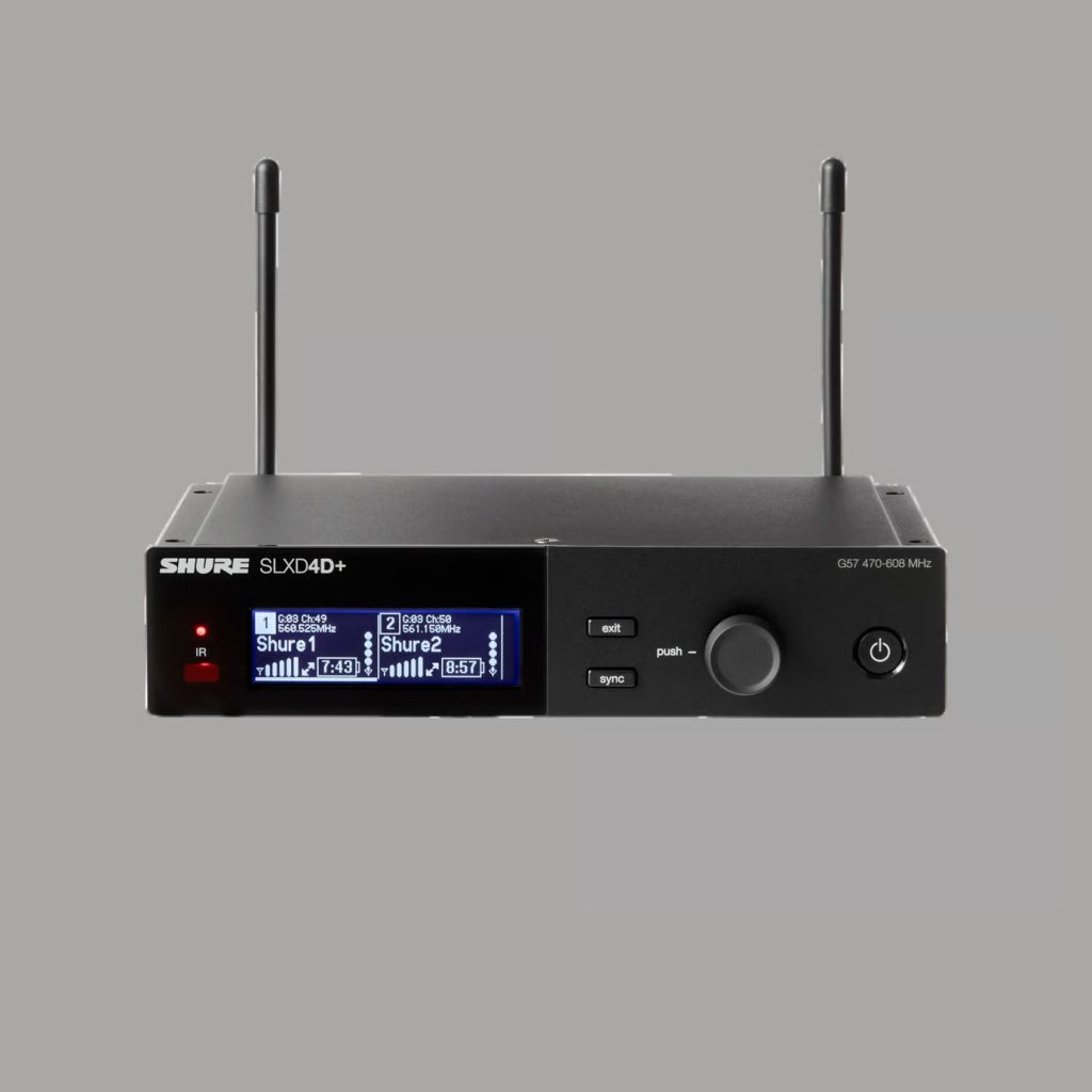 The 2.4 GHz frequency gives a reliable wireless connection up to 30 feet, letting you freely engage with the crowd. And the transmitter features onboard controls for on/off and mute.