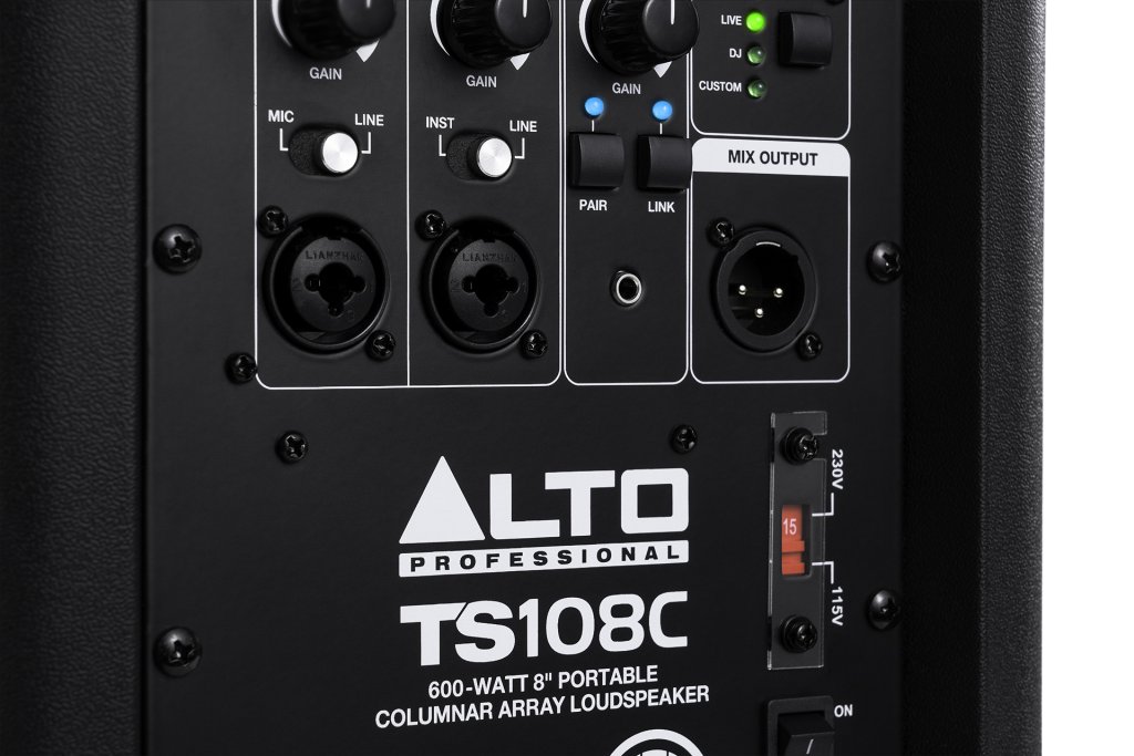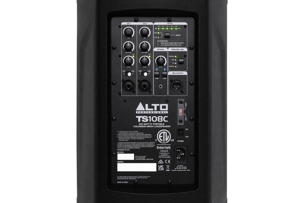 This addition to the professional-grade Alto Pro TrueSonic speaker series boasts up to 600 watts of crystal-clear audio into a slim, portable tower, making the TS108C an ideal solution for gigging musicians, DJs, and venues looking for high-performance sound in a small footprint. Its integrated eight-inch subwoofer, built-in three-channel digital mixer with reverb, and Bluetooth streaming make it quick and easy to plug in, power up, and play.