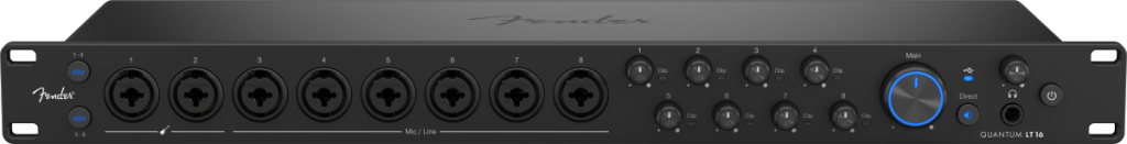 Fender Quantum LT 16 is the flagship LT interface, offering eight pristine MAX-HD mic preamps, fourteen total analog line inputs for easy integration of external mic preamps, synths, mixers, or other line-level devices, standalone 8-channel mic-pre functionality, analog synth integration via DC-coupled outputs, MIDI connectivity, and included Fender Studio Pro — the ultimate hub for professional and hybrid studios.