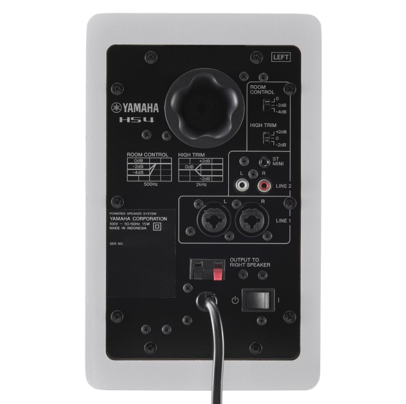 - 2-way bass-reflex powered speaker with 4.5" cone woofer and 1" dome tweeter